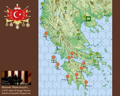 Reflectint això darrer, observeu que les localitzacions d'esdeveniments de la setmana passada veuen ara incrementat el seu nivell de caos de 5 a 6, amb la qual cosa la probabilitat d'una nova incidència augmenta del 5% al 10%. Cal fer esment del cas de Baviera, que la setmana passada va donar resultat positiu i em vaig oblidar de llençar-ne daus per l'esdeveniment; per aquest motiu, l'hi he incrementat igualment el nivell de caos, per compensar l'oblit.